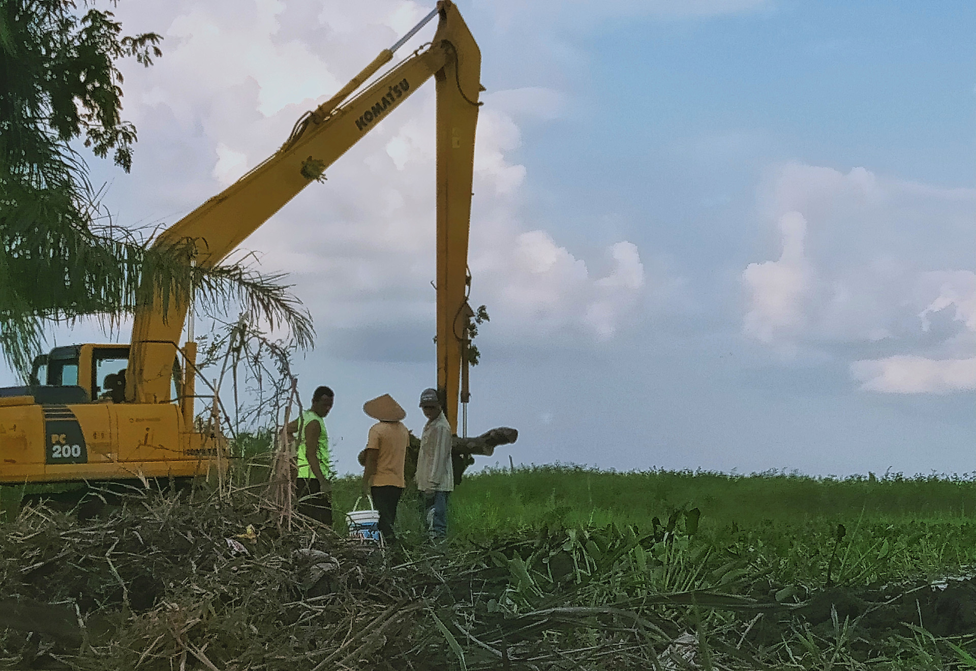 Daud took a sip of his kretek cigarette while watching heavy equipment clearing a canal on a corn farm on the roadside of Jebus Village, Kumpeh Subdistrict, Muaro Jambi District, Jambi Province. Daud's face was happy because he could start working on his land and plant corn in the following month. Daud believed that after the canal is cleared, the water inundating his peatland would begin to dry up.