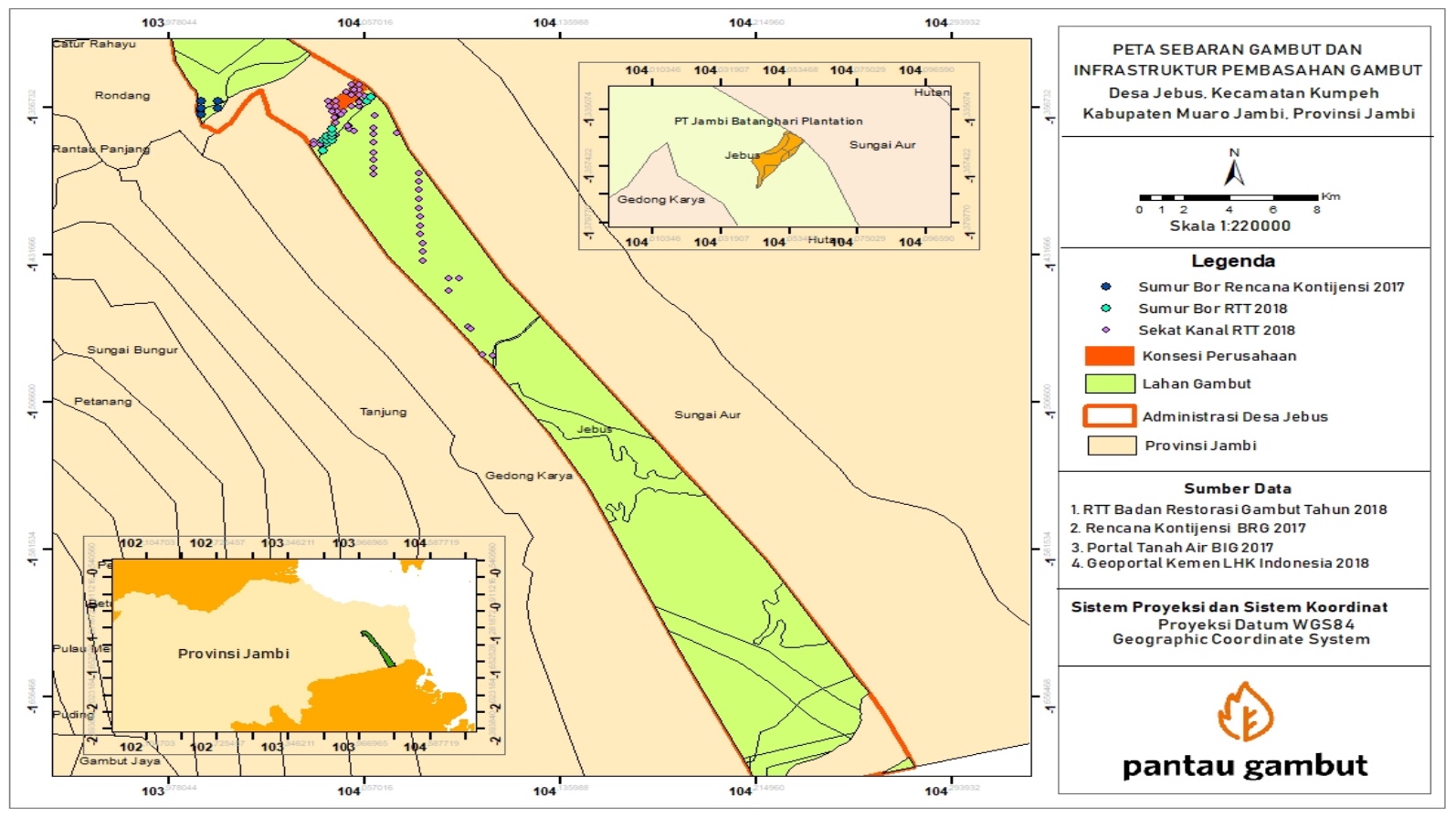 Jebus Village, which is administratively located in Kumpeh Ilir Subdistrict, Muaro Jambi, is located in the territory of two Peat Hydrological Units (KHG), i.e. the Batang Hari River - Air Hitam Laut Unit and the Mendahara River - Batanghari River Unit. Jebus Village consists of mostly peatlands with an area of 116,028 hectares. These two Peat Hydrological Units are included in the priority restoration program for 2 million hectares of peatland.