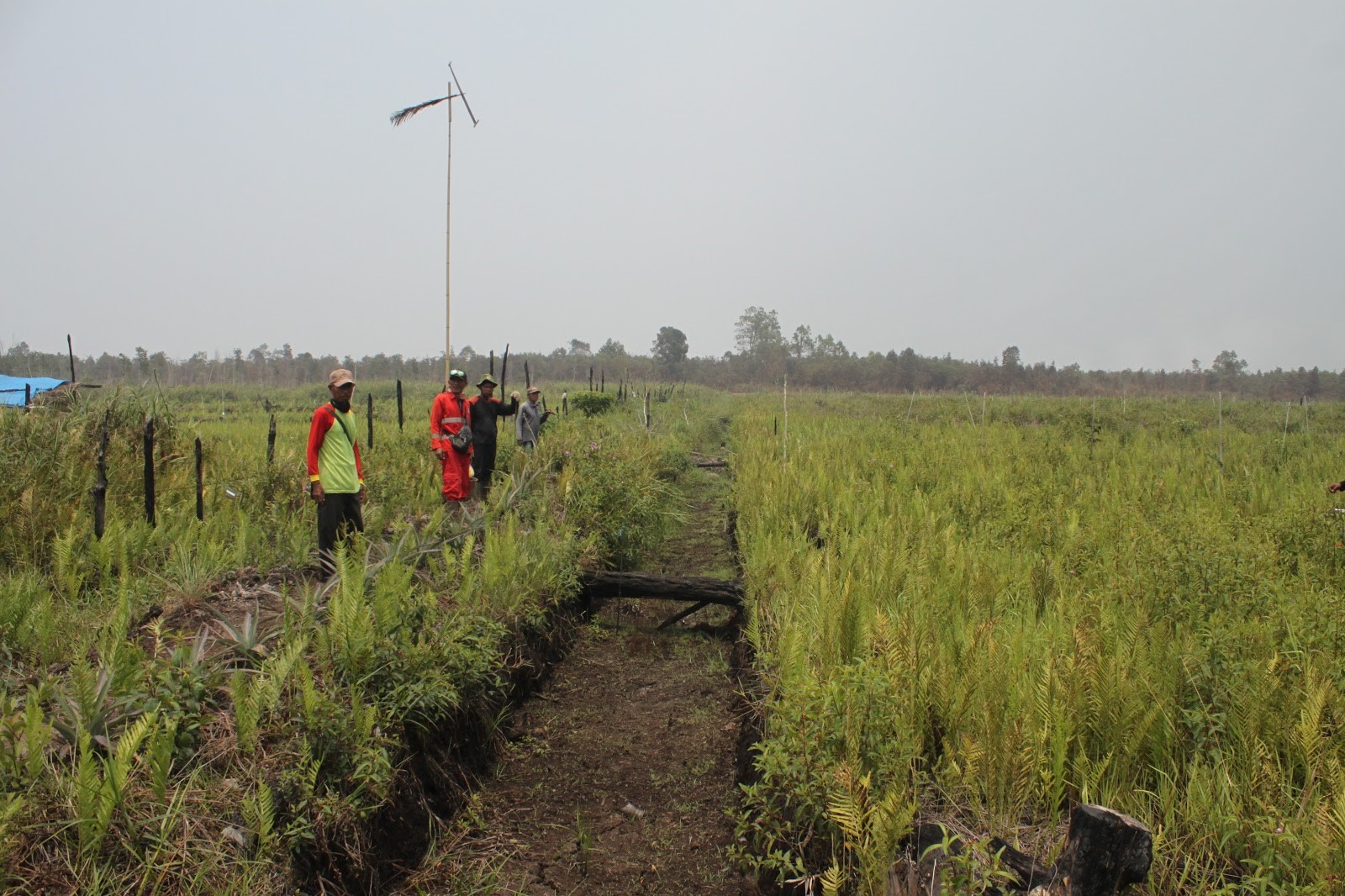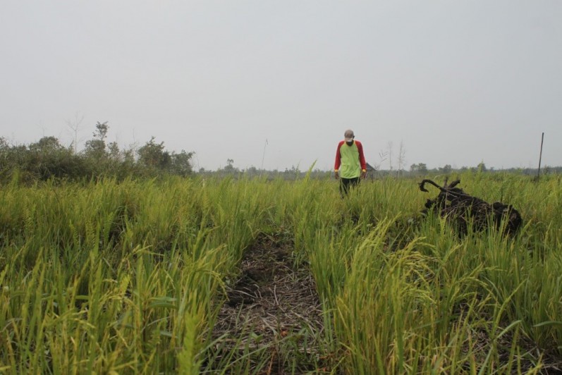 Iswadi, who just arrived, immediately told me about their recklessness in choosing the no-burn method to plant rice. He said that before planting rice seedlings, they made dikes or embankments to keep water all year round on peatlands. Then they also cut the grass and cleaned the weeds that grew on the surface for the rice to grow properly. Their work went well without a hitch, so Iswadi and his friends were optimistic that they could produce a lot of rice.