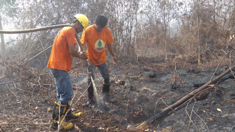 “My latest report is 12 hectares. Yesterday it was 10 hectares, and it has already gone up. This is a nature park, Taman Wisata Alam conservation area. Currently, the fire is at 12 hectares and is expected to grow steadily. Actually, yesterday 1.5 acres of the burning area had died down, and I predict that they won’t burn again. This is how fires work; they burn in spurts. When I leave later tonight, it will start burning again,” Medang Kampai Police Chief AKP Ade Rukmayadi told Green Radio last week.