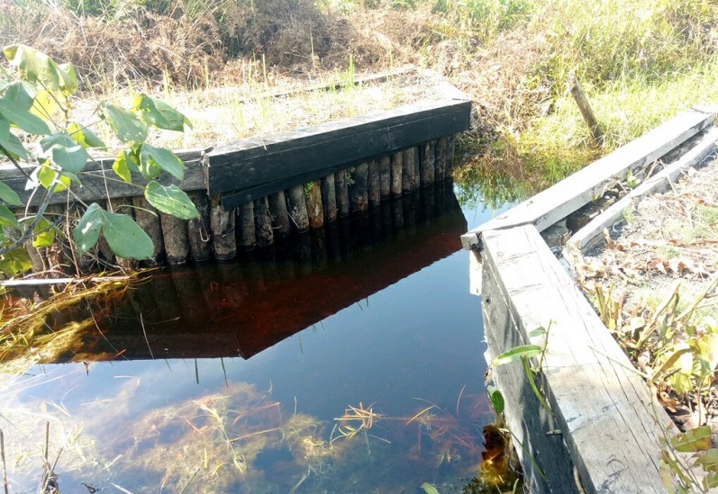 According to an explanation from the Peatland Restoration Agency (BRG), the canal blockings are built to hydrate by blocking the upstream peat water flow by preventing it from flowing downstream. In theory, by using the canal blockings in peatlands, the upstream peat water level will increase. However, the damage shown in the photos clearly shows that the canal blockings are not working properly.